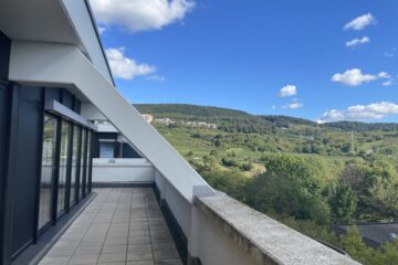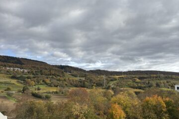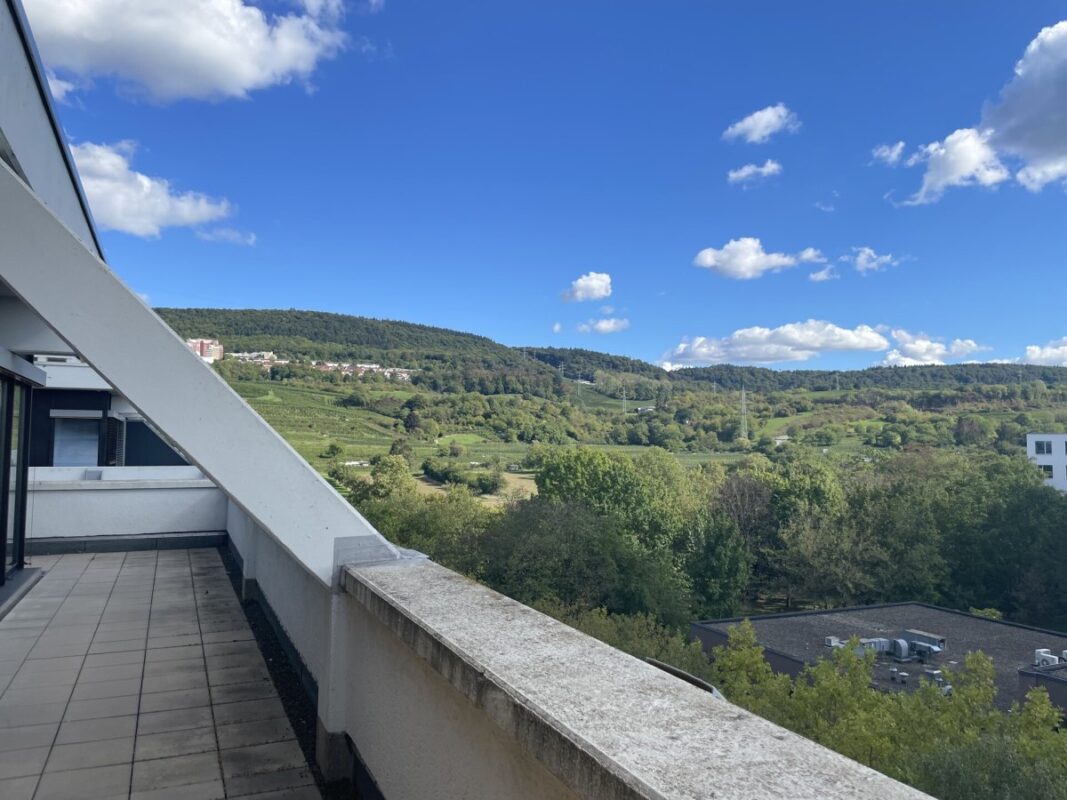 Highlight ist die um die komplette Mieteinheit liegende Dachterrasse mit tollem Blick auf die Weinberge von Rohrbach, die Rheinebene und die Pfälzer Berge.