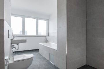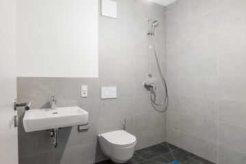 •Edle Bäder mit moderner Dusche, Sanitärausstattung von Laufen und Handtuchheizkörper
